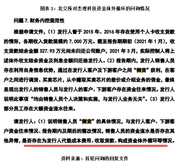 针对杰理科技的模糊回应,北交所进一步追问核心风险:要求杰理科技说明销售人员上述行为是否存在为公司代垫成本费用、收取货款、构成资金体外循环等情况。